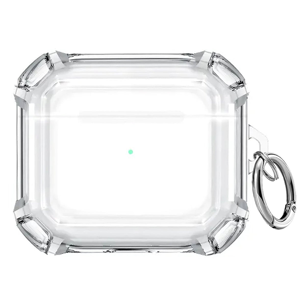 Skalet har förstärkta hörn i transparent för extra stöttålighet och kommer med en praktisk karbinhake som gör det enkelt att fästa på väskor, bälten eller nyckelringar.