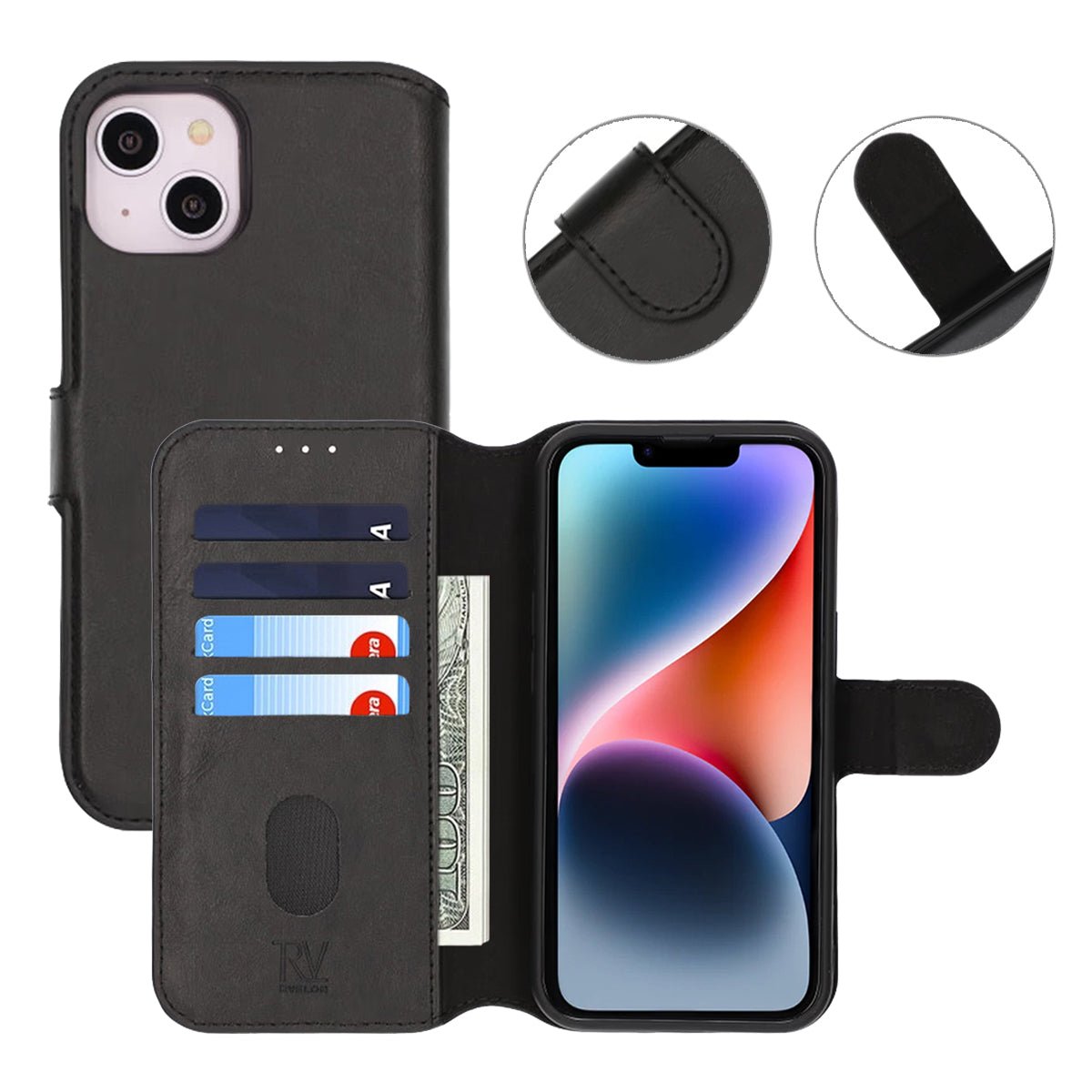 Rvelon Plånboksfodral Magnet för iPhone 13 och 14 - Svart