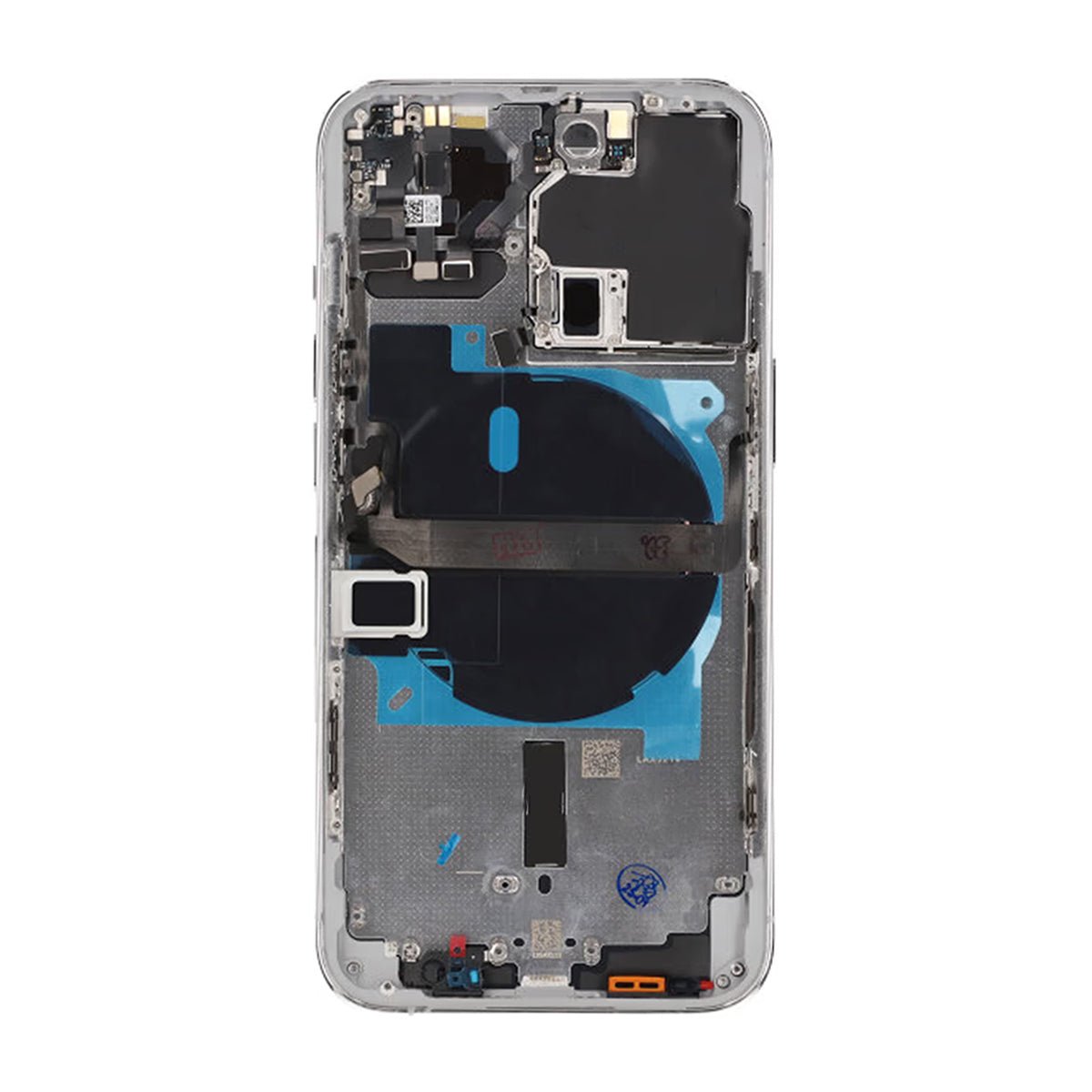 kameraglas, NFC antenn, Wifi antenn knappreglage och simkortshållare.
