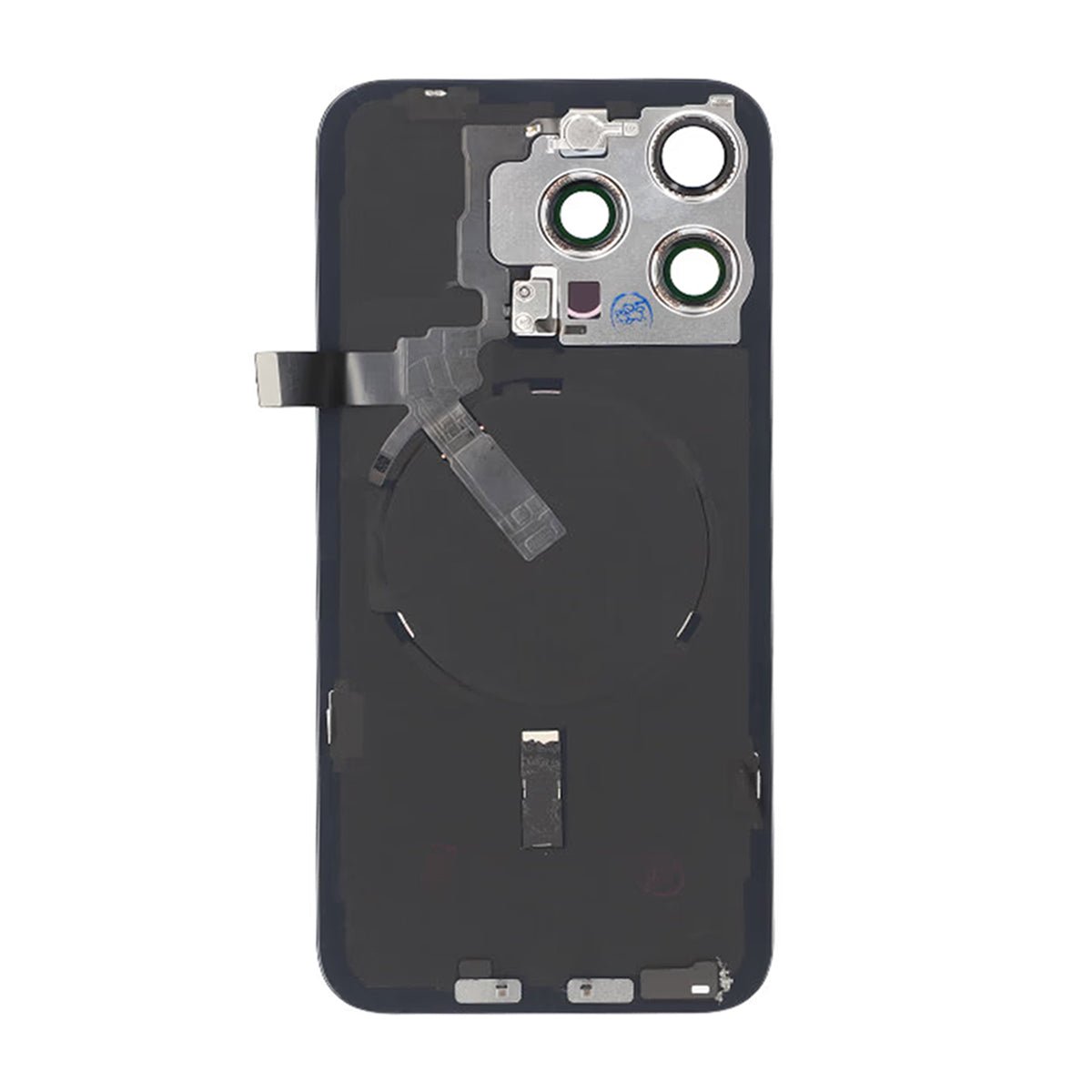 Denna baksida inkluderar bakglaset, kameralins, blixt/ficklampa, mikrofon, NFC antenn med flexkabel och magsafe magneter.