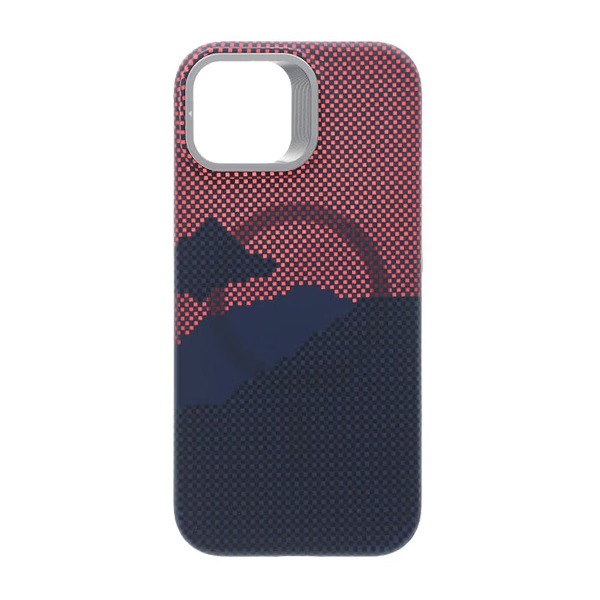 Skalet är täckt med ett unikt pixelvävt texturmönster av landskap och berg som ger en stilren och modern känsla.
