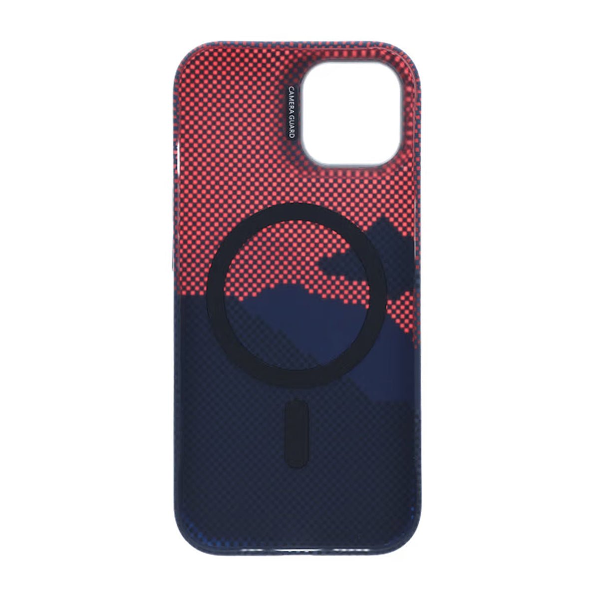 Med sin djupa röda nyans med blåa detaljer skapar detta mobilskal en lyxig effekt som lyfter fram telefonens elegans.