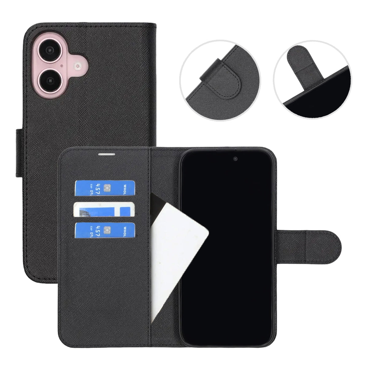 Plånboksfodral med Stativ för iPhone 16 - Svart