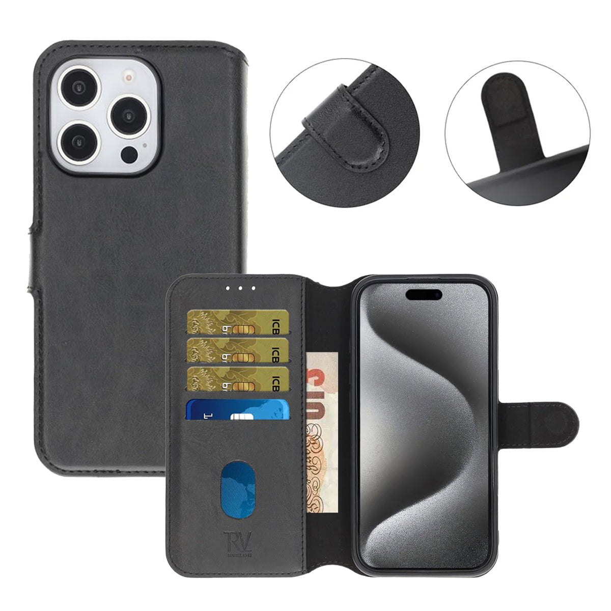 Rvelon Plånboksfodral Magnet för iPhone 16 Pro - Svart