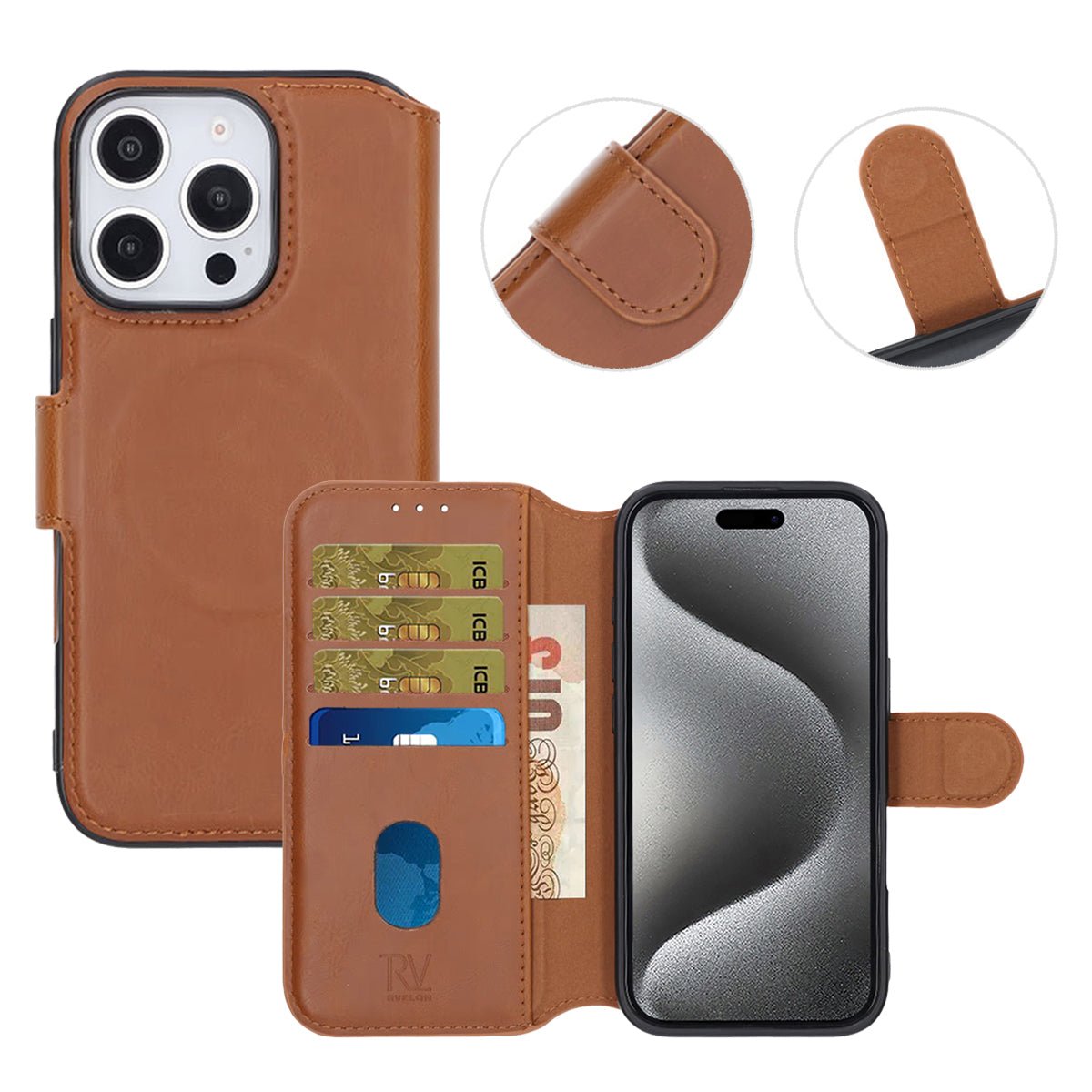 Rvelon Plånboksfodral för iPhone 16 Pro - Brun