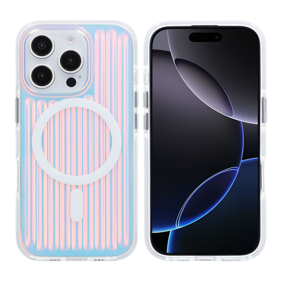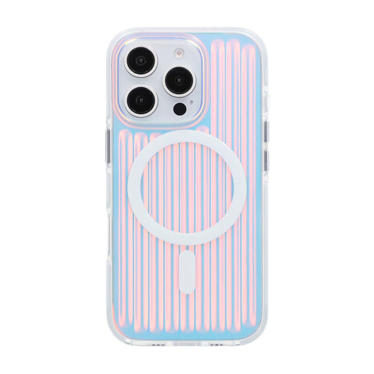 Ge din iPhone 16 Pro en unik look med detta stöttåliga mobilskal som har en reflekterande iriserande finish med ett inslag av röd färg.