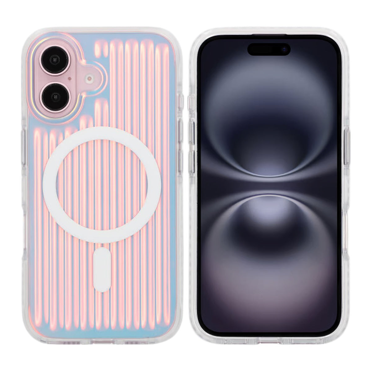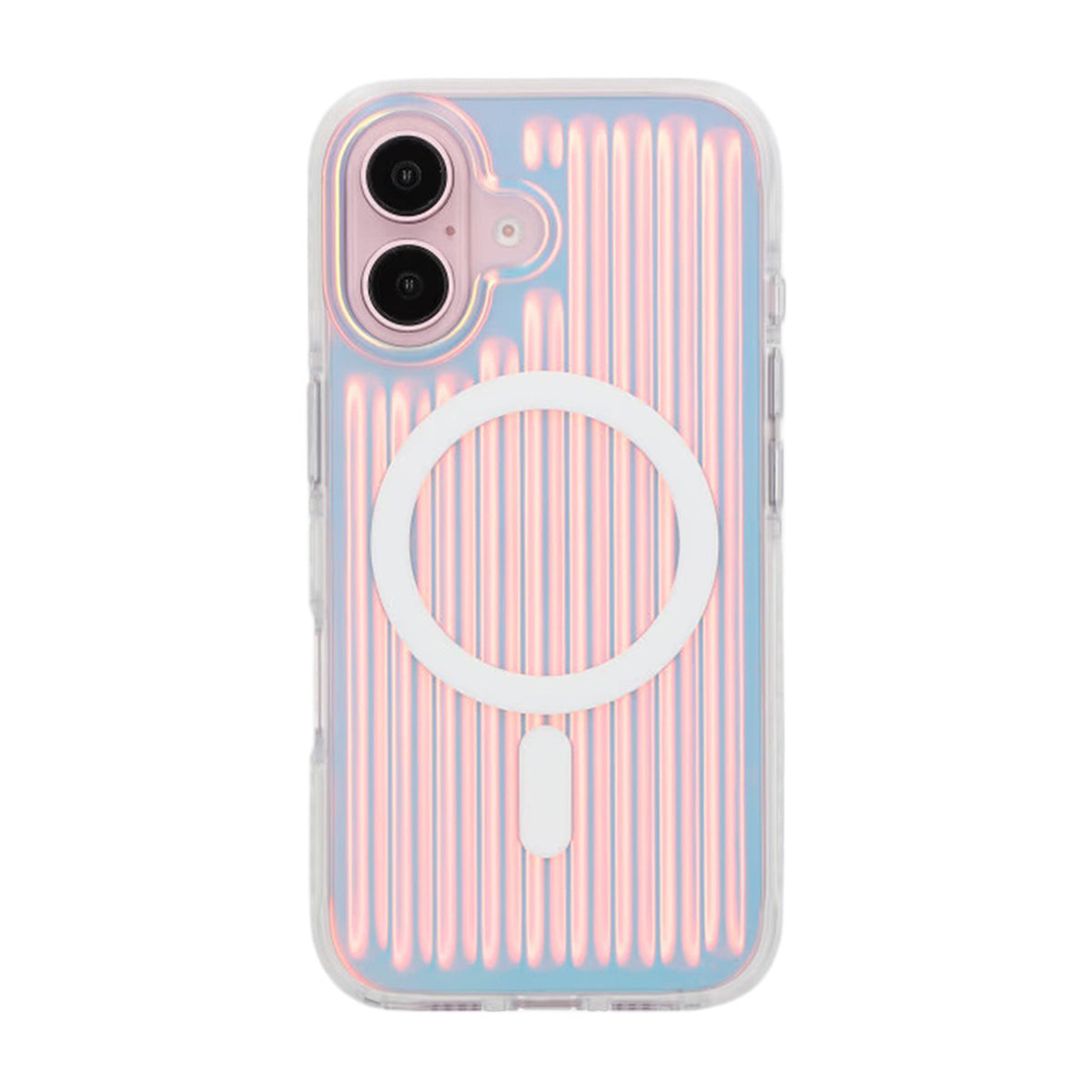 Ge din iPhone 16 en unik look med detta stöttåliga mobilskal som har en reflekterande iriserande finish med ett inslag av röd färg.