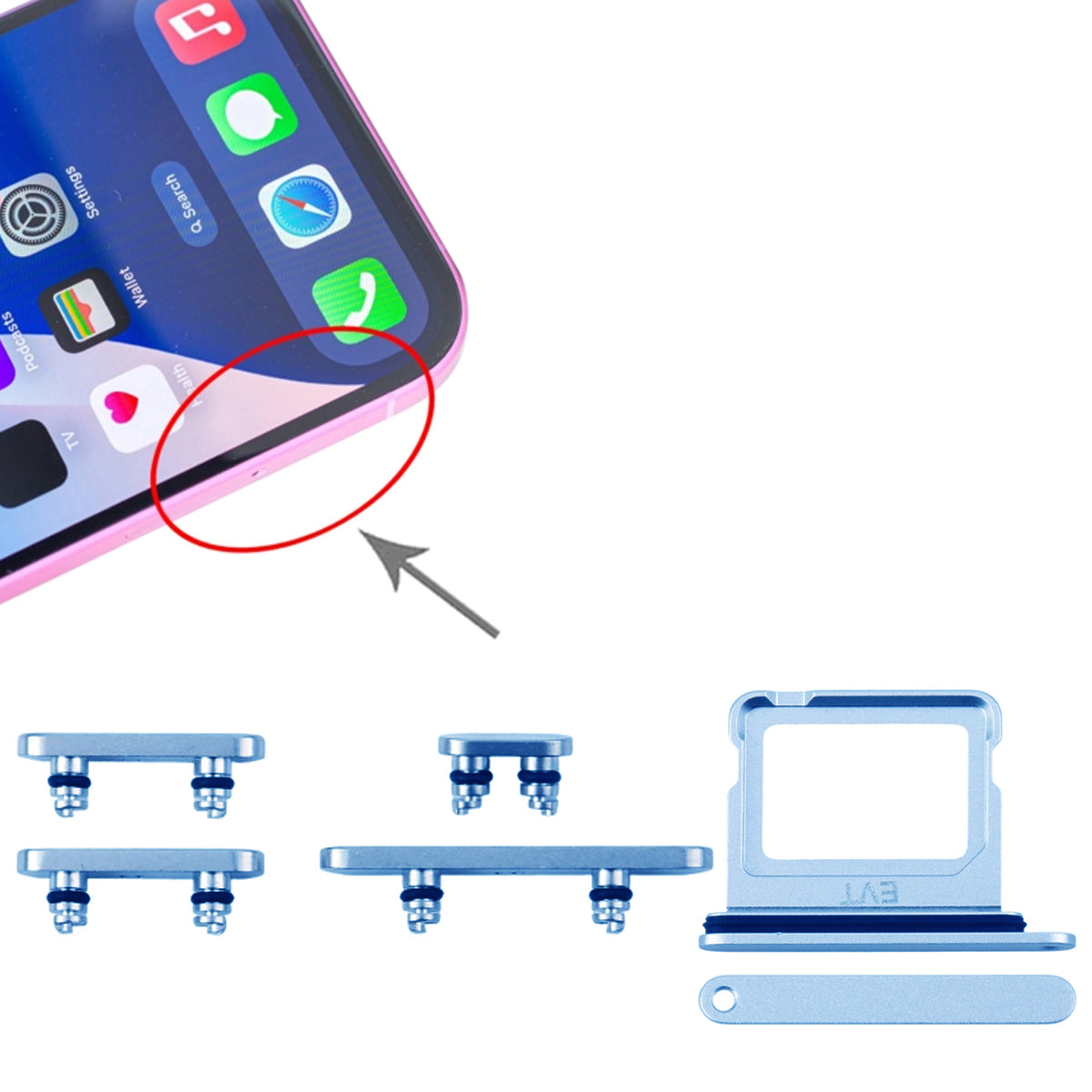 Knappar och Simkorthållare för iPhone 16 och 16 Plus - Blå