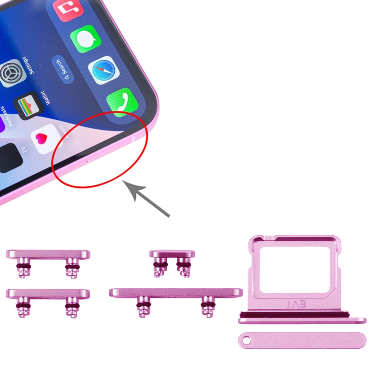 Knappar och Simkorthållare för iPhone 16 och 16 Plus - Rosa