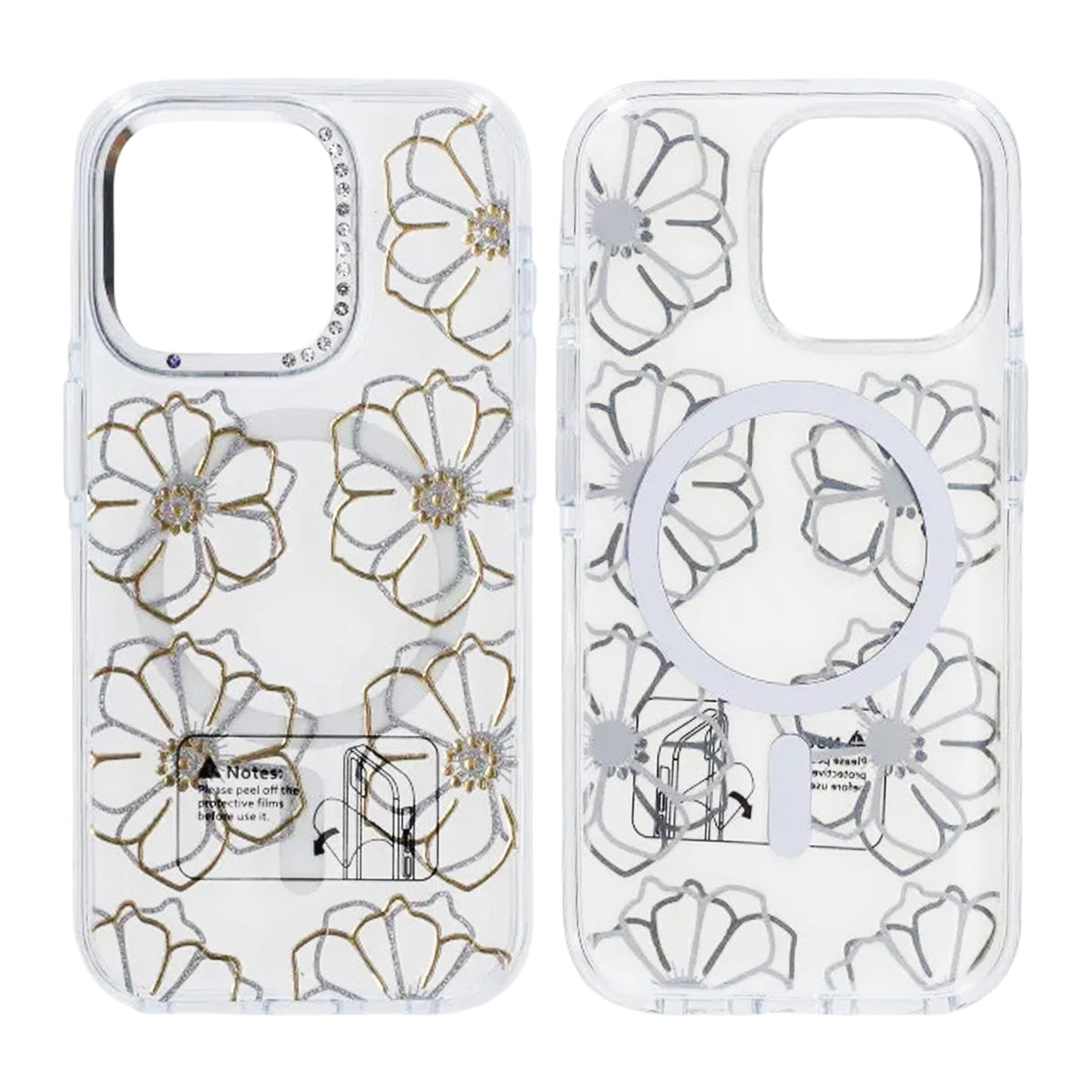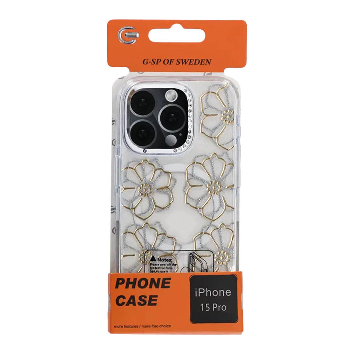 - Transparent mobilskal med guldiga blommor