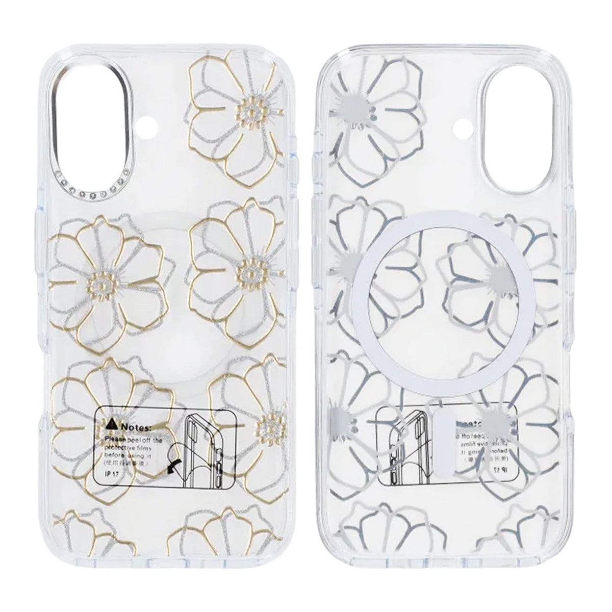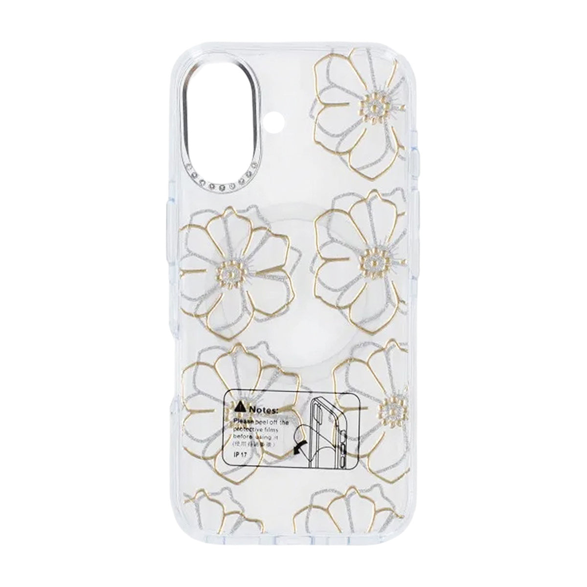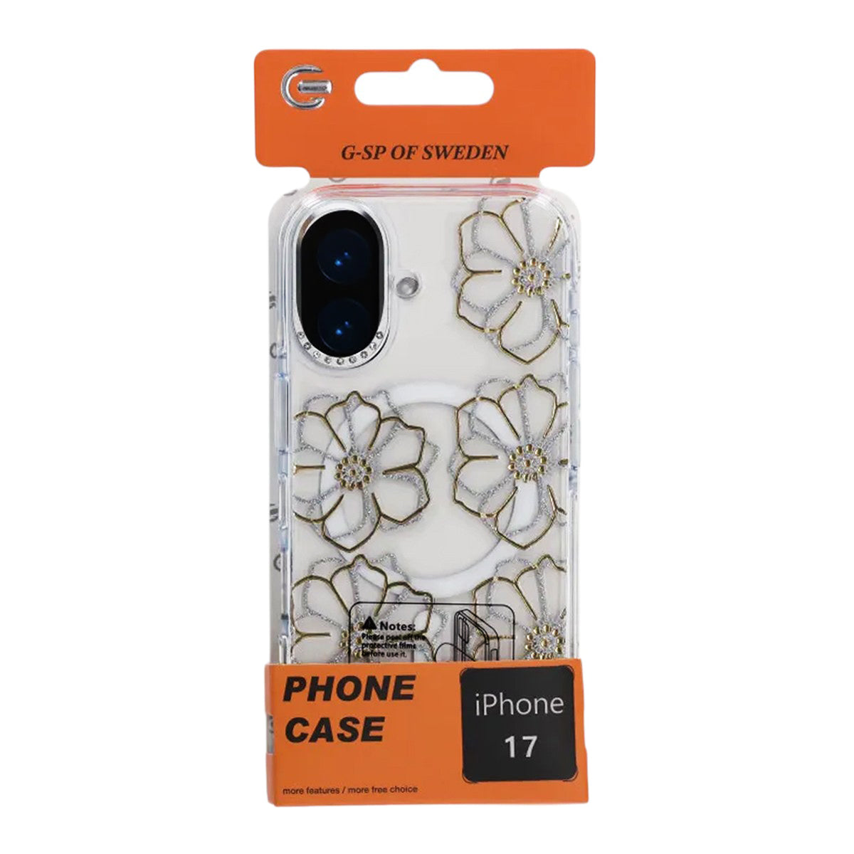 Ge din iPhone 17 en personlig touch med detta transparenta mobilskal med gulda blommor.
