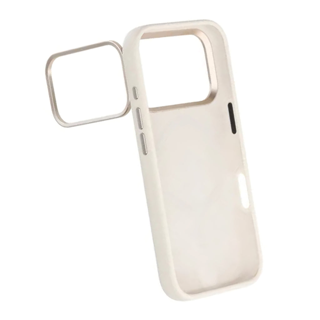 Ramen omsluter kameramodulen och skyddar linserna mot repor och stötar, medan den mjuka silikon/TPU-kanten ger ett säkert grepp och effektiv dämpning vid fall.- Fällbar kamerasarg i metall: skyddar linserna och blir ett diskret stativ vid behov.