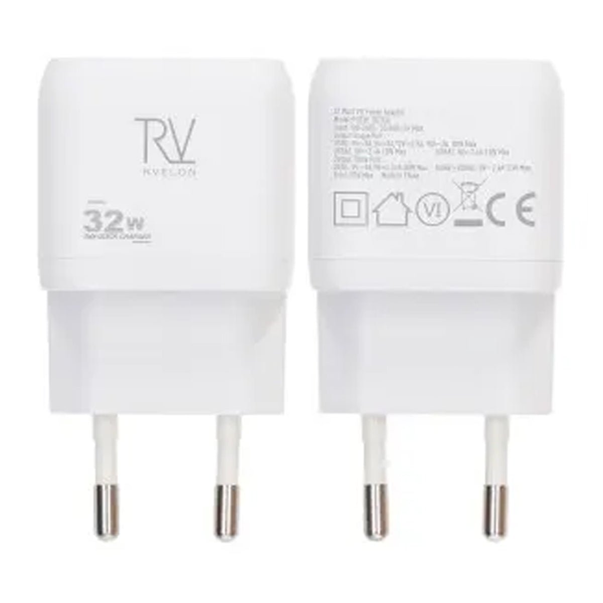 Rvelon Väggladdare USB-C och 2x USB-A 32W GaN - Vit