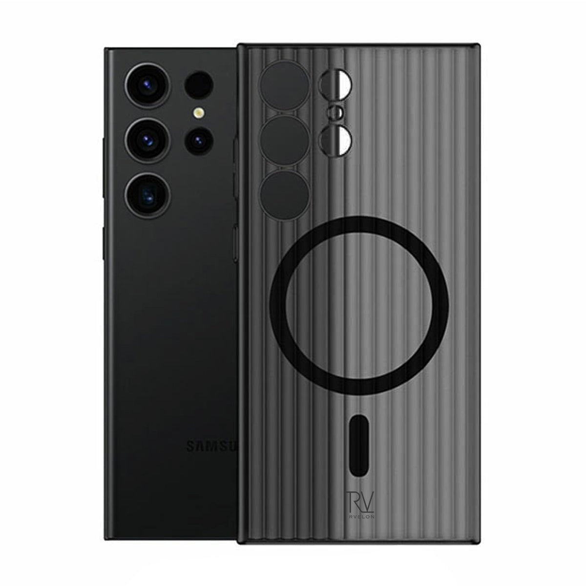 Rvelon Magsafe-skal Korrugerad för Samsung Galaxy S23 Ultra - Svart
