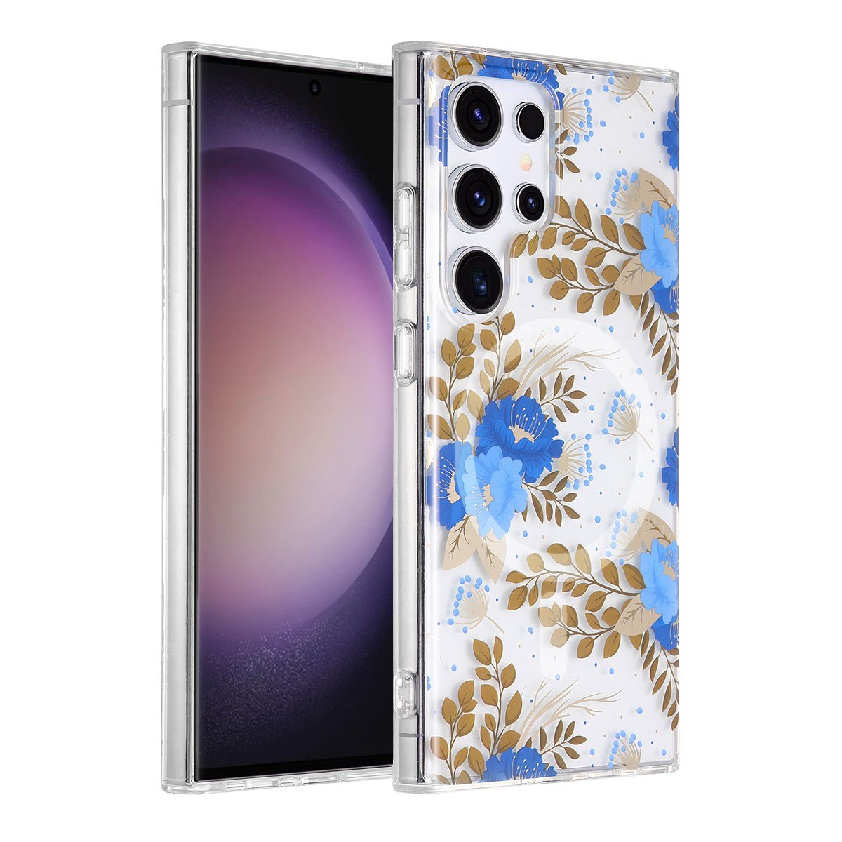 Skal Magnet för Samsung Galaxy S23 Ultra - Blommor Blå-guld