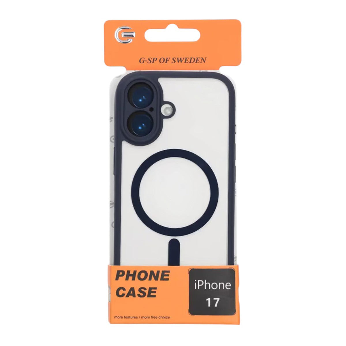Ett robust blått hybridskal för iPhone 17 som kombinerar TPU runt kanterna med en styvare, transparent baksida. Den integrerade MagSafe-ringen ger säkert fäste för laddare och magnetiska tillbehör, medan den förstärkta kameraramen med precisa utskärningar skyddar kameralinserna från repor och stötar.