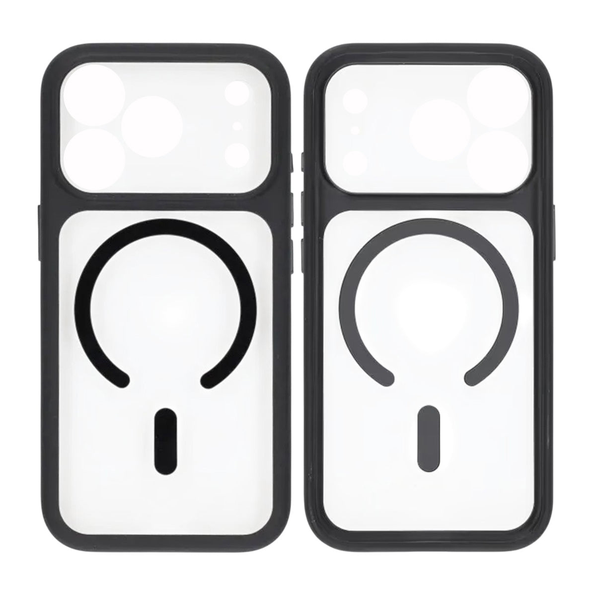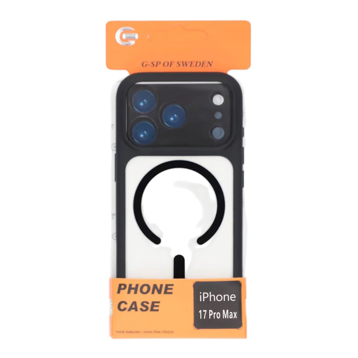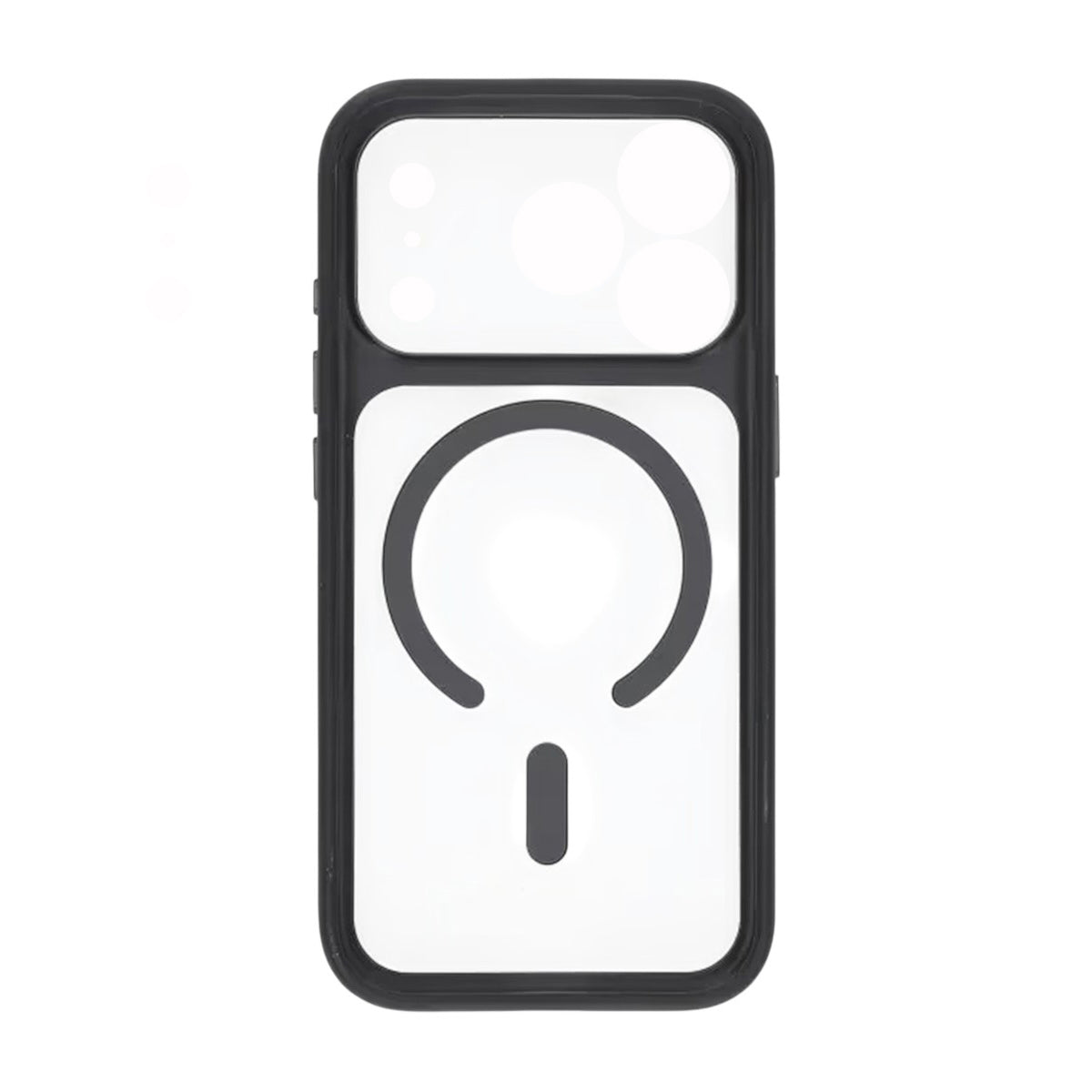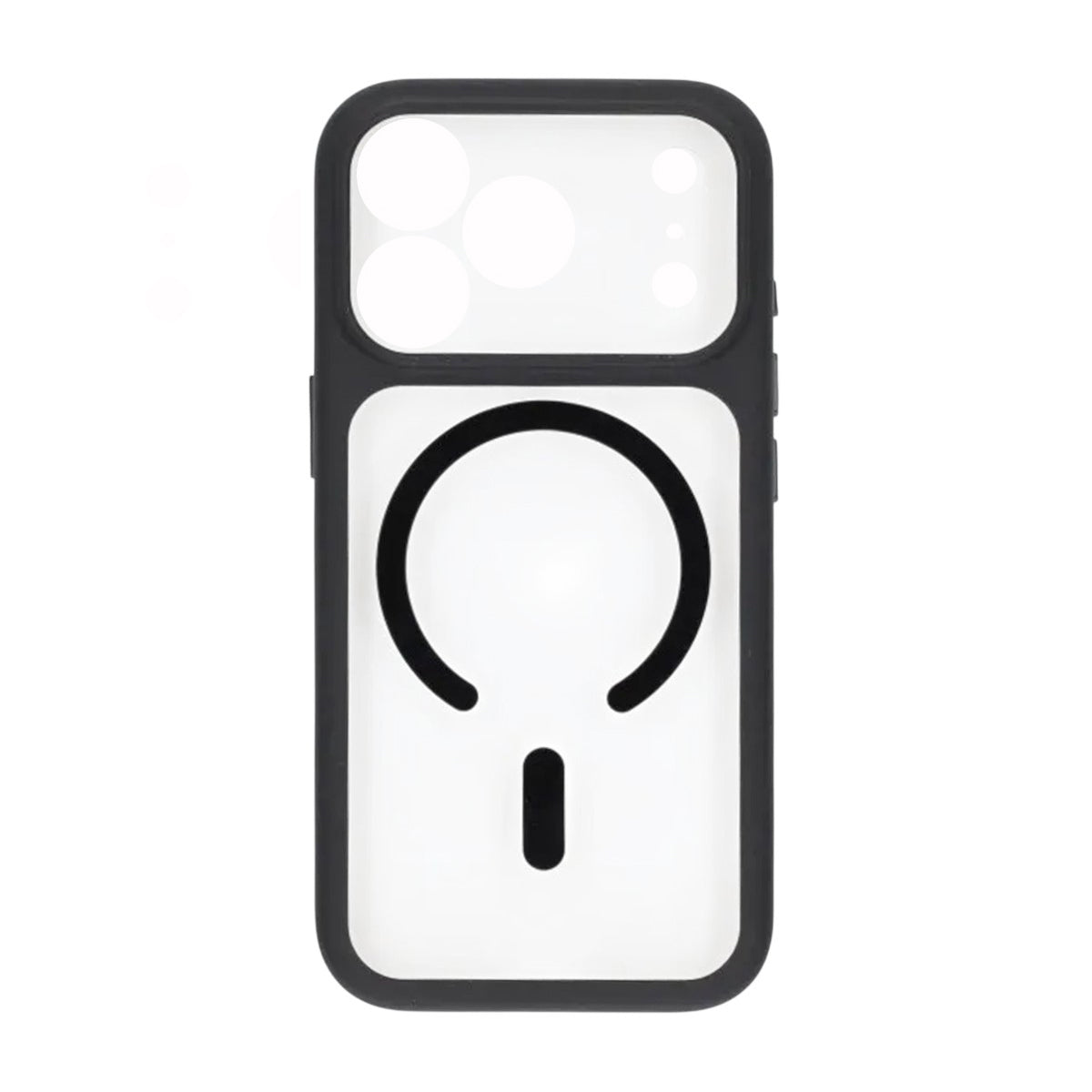 Ett robust svart hybridskal för iPhone 17 Pro Max som kombinerar TPU runt kanterna med en styvare, transparent baksida. Den integrerade MagSafe-ringen ger säkert fäste för laddare och magnetiska tillbehör, medan den förstärkta kameraramen med precisa utskärningar skyddar kameralinserna från repor och stötar.