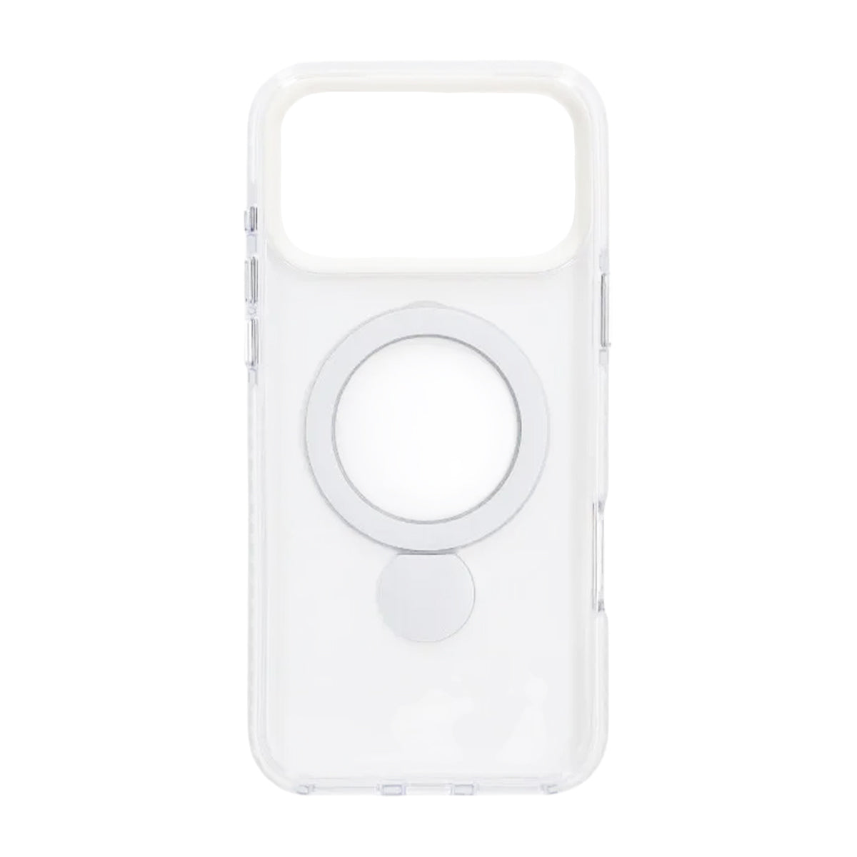 Ge din iPhone 17 Pro både stil och smart funktion med detta transparenta och vita MagSafe-skal utrustat med en utfällbar ring som snabbt blir ett praktiskt stöd i vardagen.