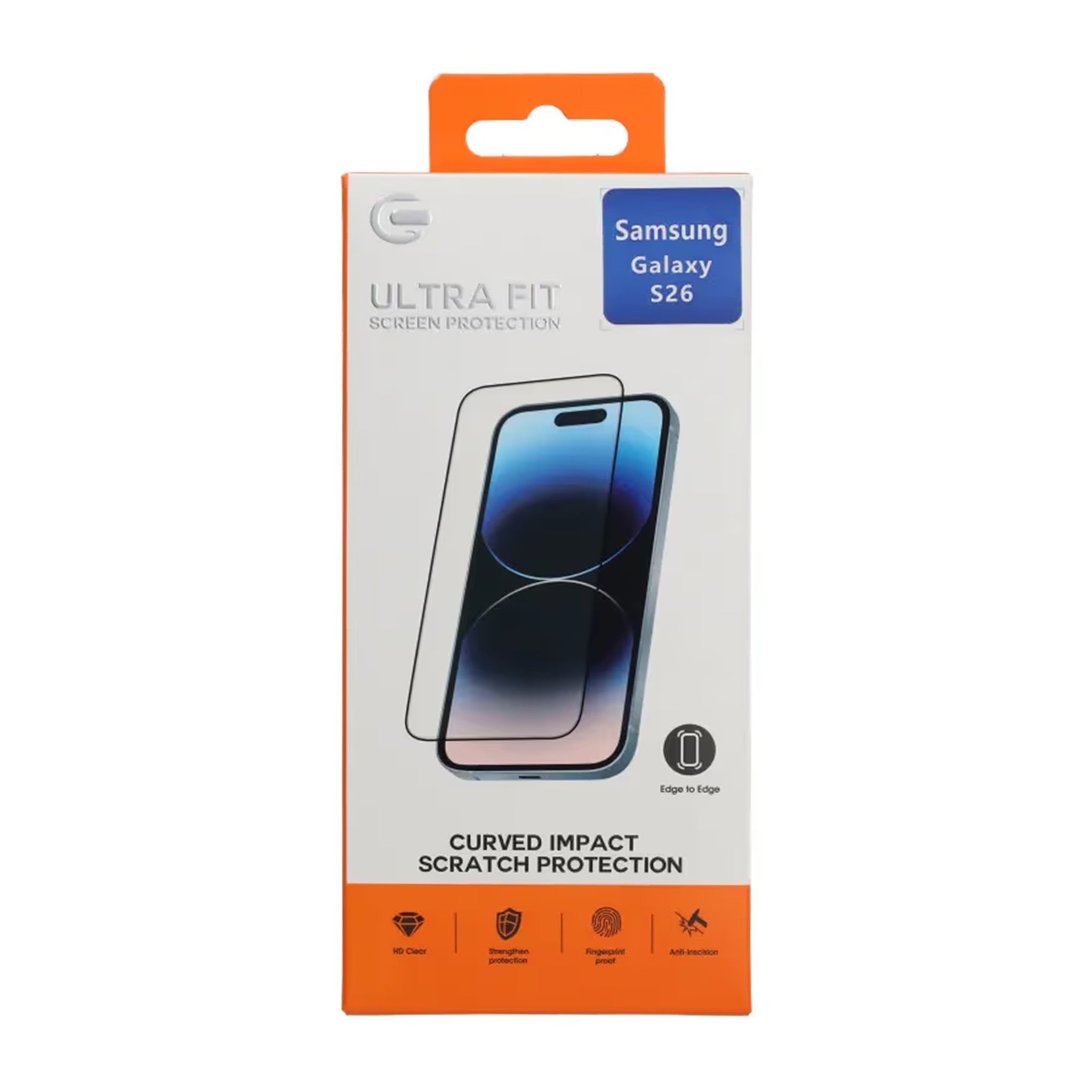 Skydda skärmen på din Samsung Galaxy S26 med ett tunt skärmskydd i härdat glas som kombinerar effektivt skydd med bibehållen känslighet och skärpa.